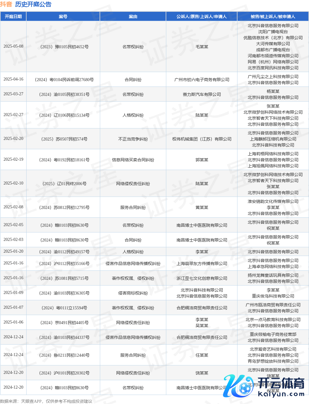 本站消息九游体育app官网,字据天眼查APP露馅,近日公布了一则北京抖音书息行状有限公司手脚被告/被上诉东谈主的开庭公告,详备实质如下: